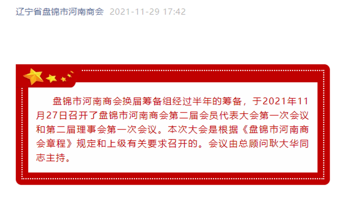 辽宁省盘锦市河南商会学习十九届六中全会精神