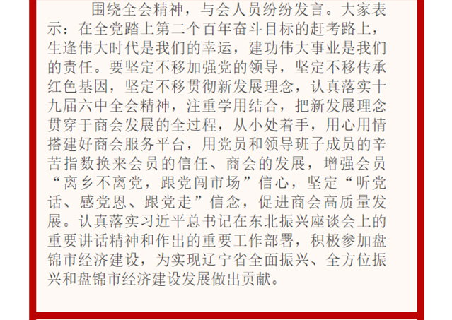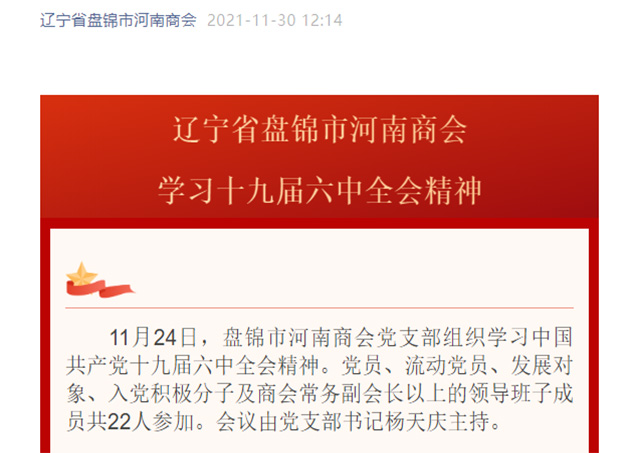 辽宁省盘锦市河南商会学习十九届六中全会精神