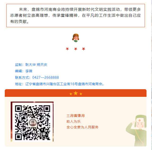 盘锦市河南商会开展“学雷锋,我行动;做示范,勇争先”系列活动。