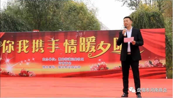 王德华会长代表盘锦市河南商会讲话,他表示:重阳节在中国传统文化中,具有特殊的地位和意义。每位老人都曾有过热情豪迈的青春,拼搏奋斗的历程。曾经奋斗在呕心沥血的领导岗位,征战在保家卫国的战场,奉献在洒满汗水的建设一线。为盘锦建设贡献出了自己的青春和力量。盘锦市河南商会理应为老年人做出自己的贡献。河南商会成立近一年来,为公益事业已捐款一百多万元。此次活动,我们为老年人提供保温杯、冬被、红酒、茶叶等生活用品。这些物品,能为老年人的生活提供一些帮助。