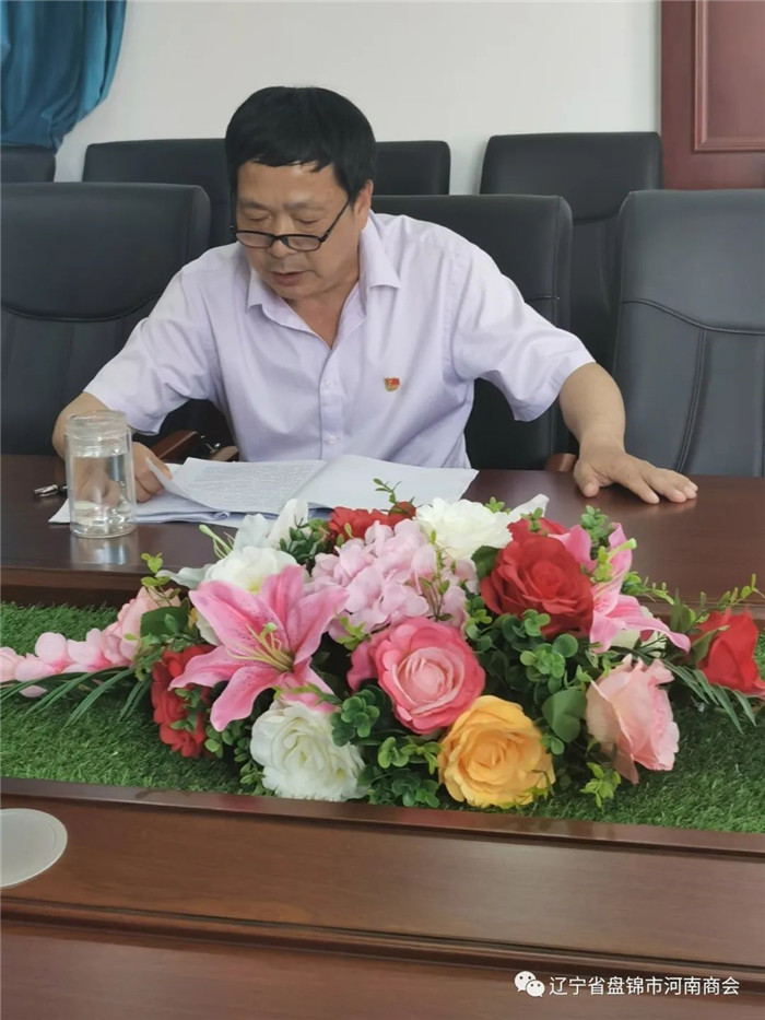 6月5日下午,盘锦市河南商会党支部召开“学精神、强信心、聚人心,同发展”主题党日活动,传达学习“全国两会精神”,组织商会企业领导座谈会,研究商会在新形势下如何帮助会员企业共克时艰、共同发展、抱团取暖。会议由商会党支部书记杨天庆主持,商会全体党员、党员发展对象、入党积极分子参加会议。