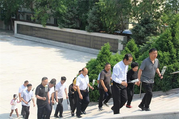 6月8日,组织党员、党员发展对象、入党积极分子、会员代表共25人,到盘锦市沙岭战役烈士陵园和中共盘锦市******个党支部党员教育基地,接受爱国主义和革命英雄主义教育。高高耸立的烈士纪念碑记载着烈士们的丰功伟绩,滔滔辽河水无声的述说着先辈们的英雄故事。为了人民的解放事业,2159名东北民主联军英勇的战士在这里献出了宝贵的生命。