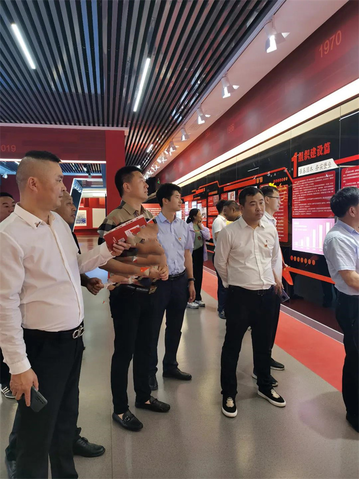 参观结束后,会长王德华、党支部书记杨天庆与沙岭镇尖台子村党支部驻村******书记王硕围绕乡村振兴、助力乡村发展进行了深入的交谈。会长王德华表示:通过参观学习,我们要向革命先辈们那样,以人民为中心,牢记全心全意为人民服务的宗旨,充分调动商会资源,发挥商会优势,把助力尖台子村发展作为下一步商会的主要工作来落实,为乡村振兴发展出一份力、发一份光。