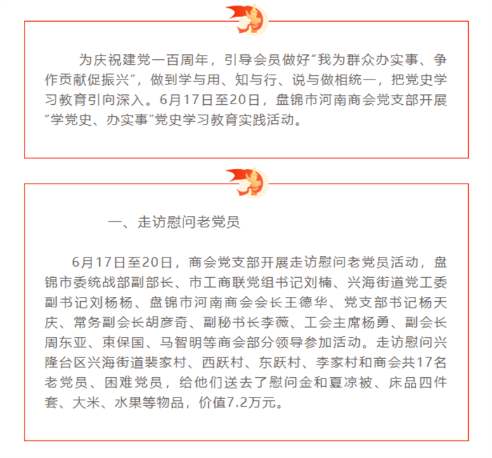 盘锦市河南商会党支部开展“学党史、办实事” 党史学习教育实践活动